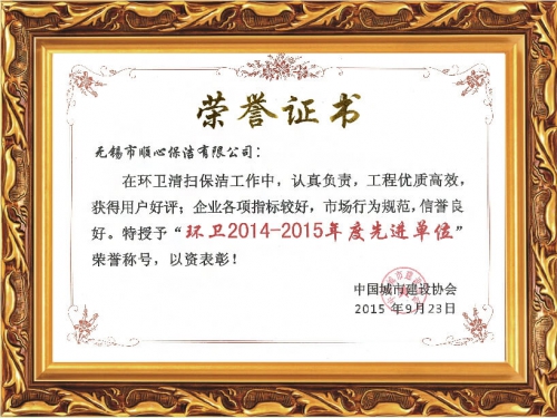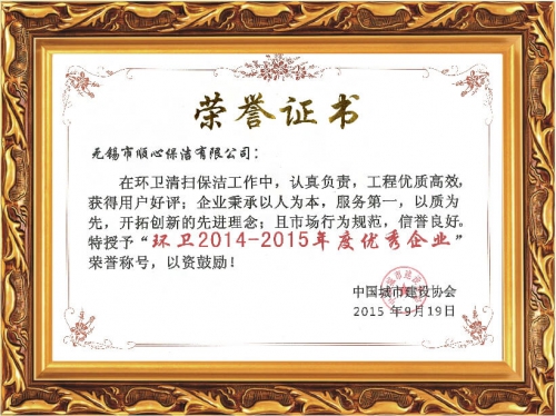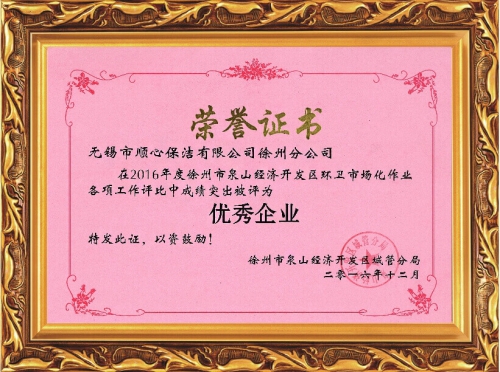 2016年徐州泉山经济开发区环卫市场化作业优秀企业