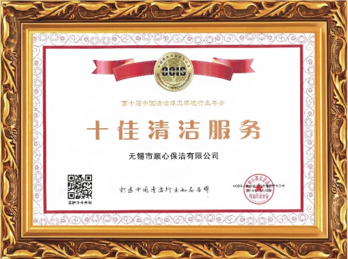 第十届中国清洁环卫环境行业年会十佳清洁服务